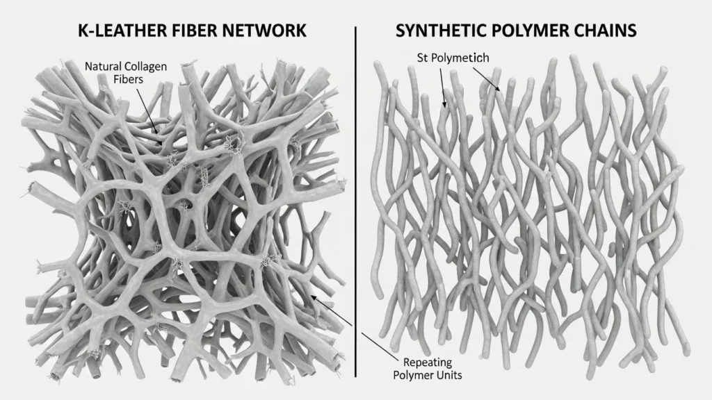 In contrast, synthetic uppers are engineered for “Zero-Distortion.” Whether they are made from Teijin microfibers, knitted polyesters, or polyurethane-coated meshes, these materials are built using long-chain polymers.